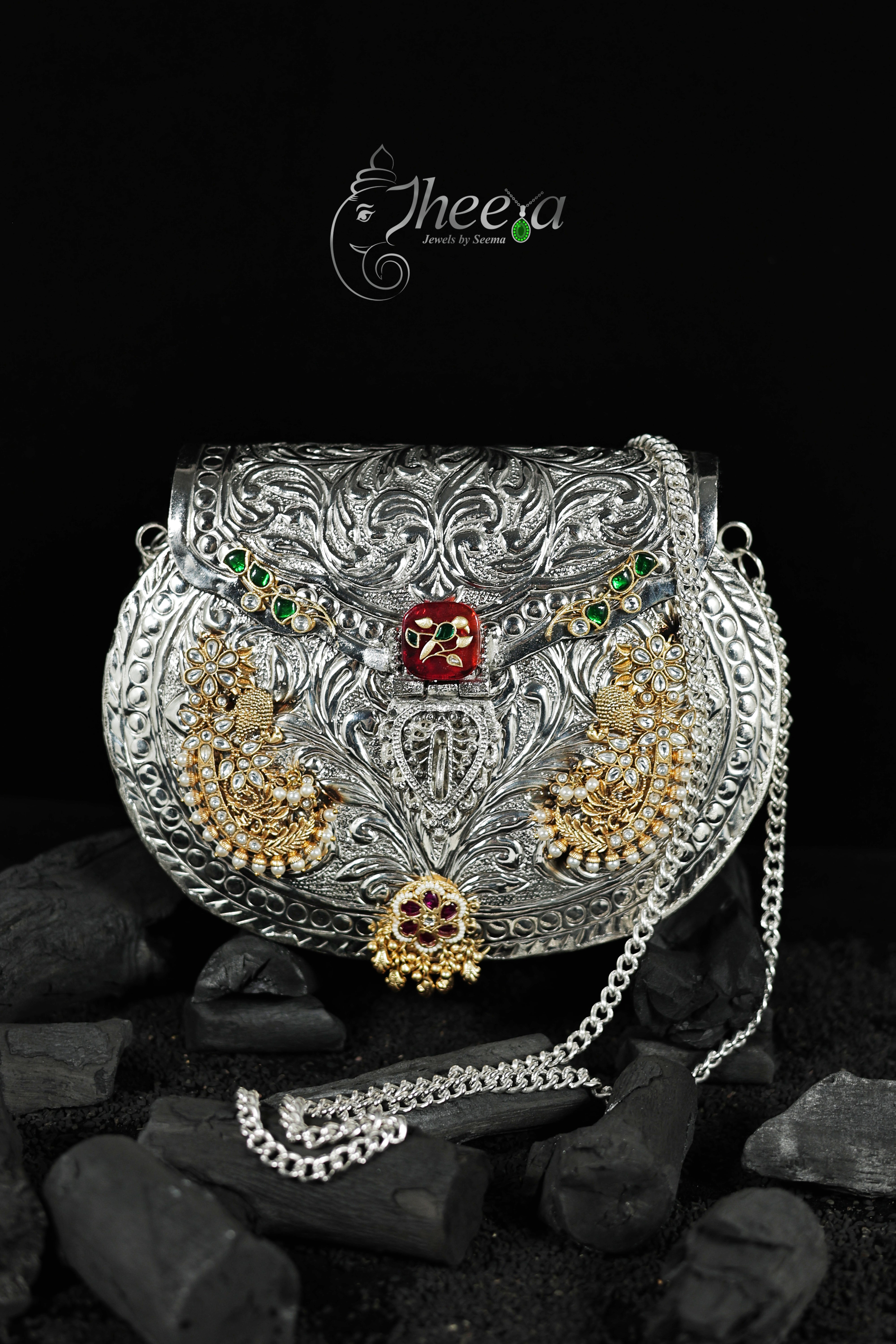 Royal Bag with gold plated carving with floral moissanites