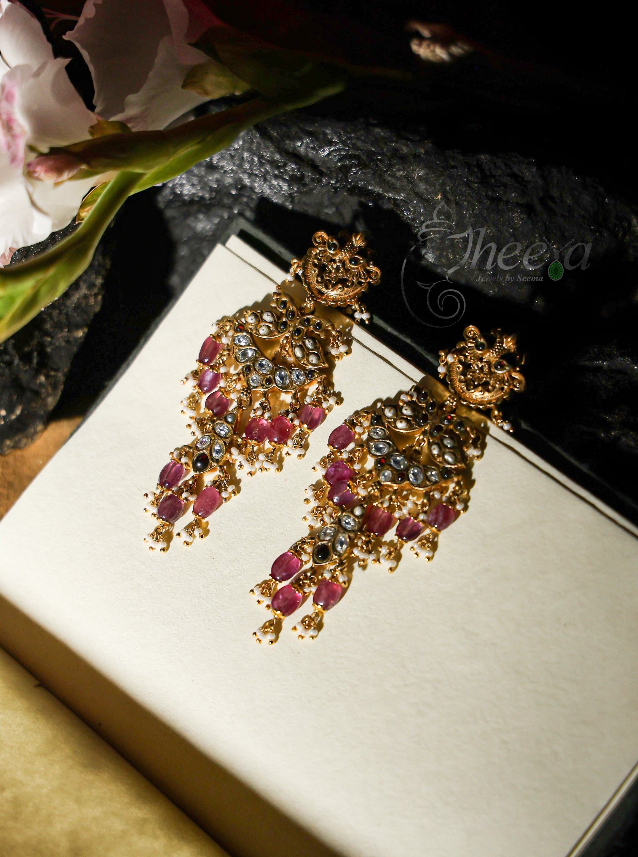 Amethyst jadao kundan long earrings