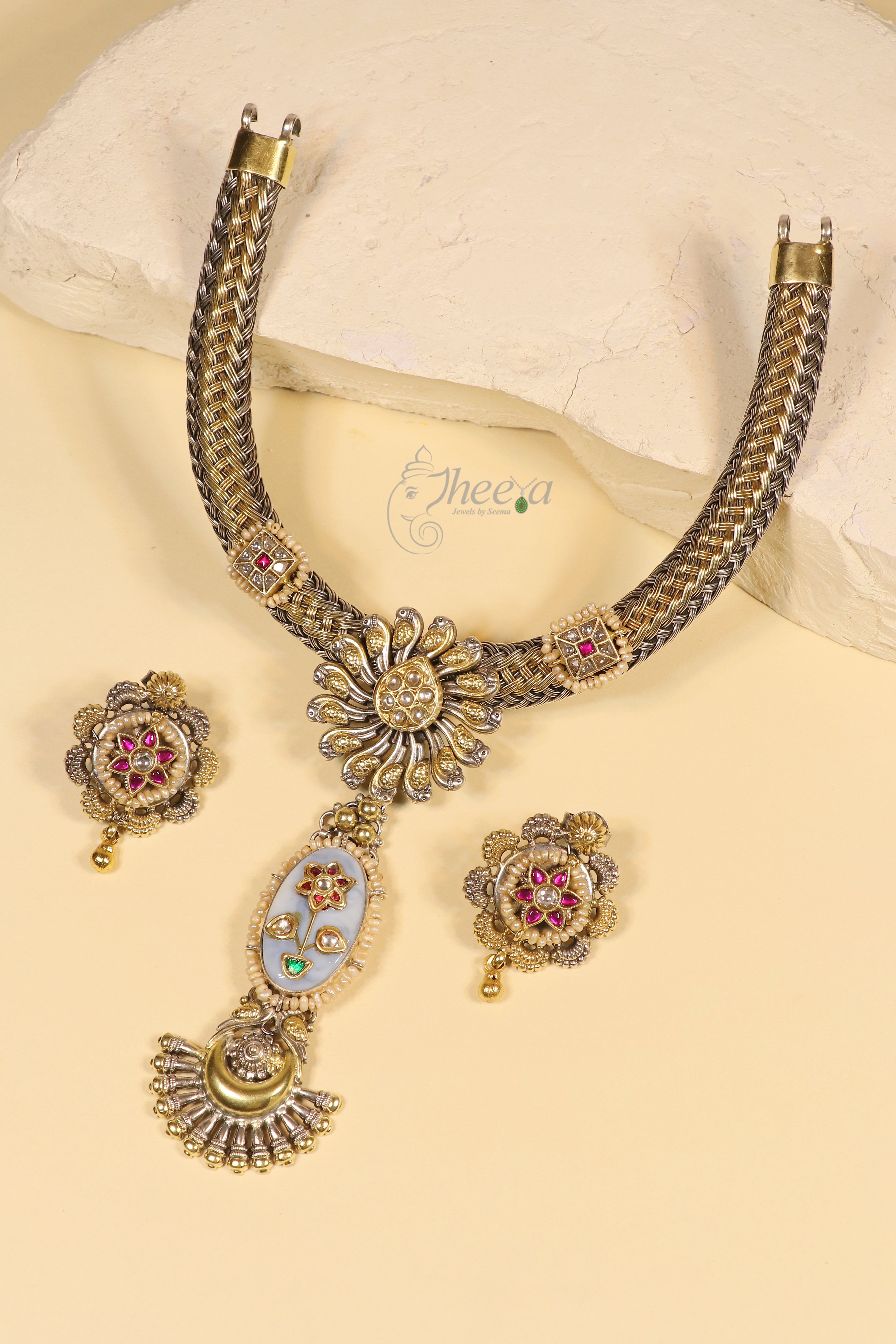 Regular price $499.00Sale price $499.00 Regular priceUnit price / perA beautiful hasli with a weave design in dual tone finish and a pendant with earrings