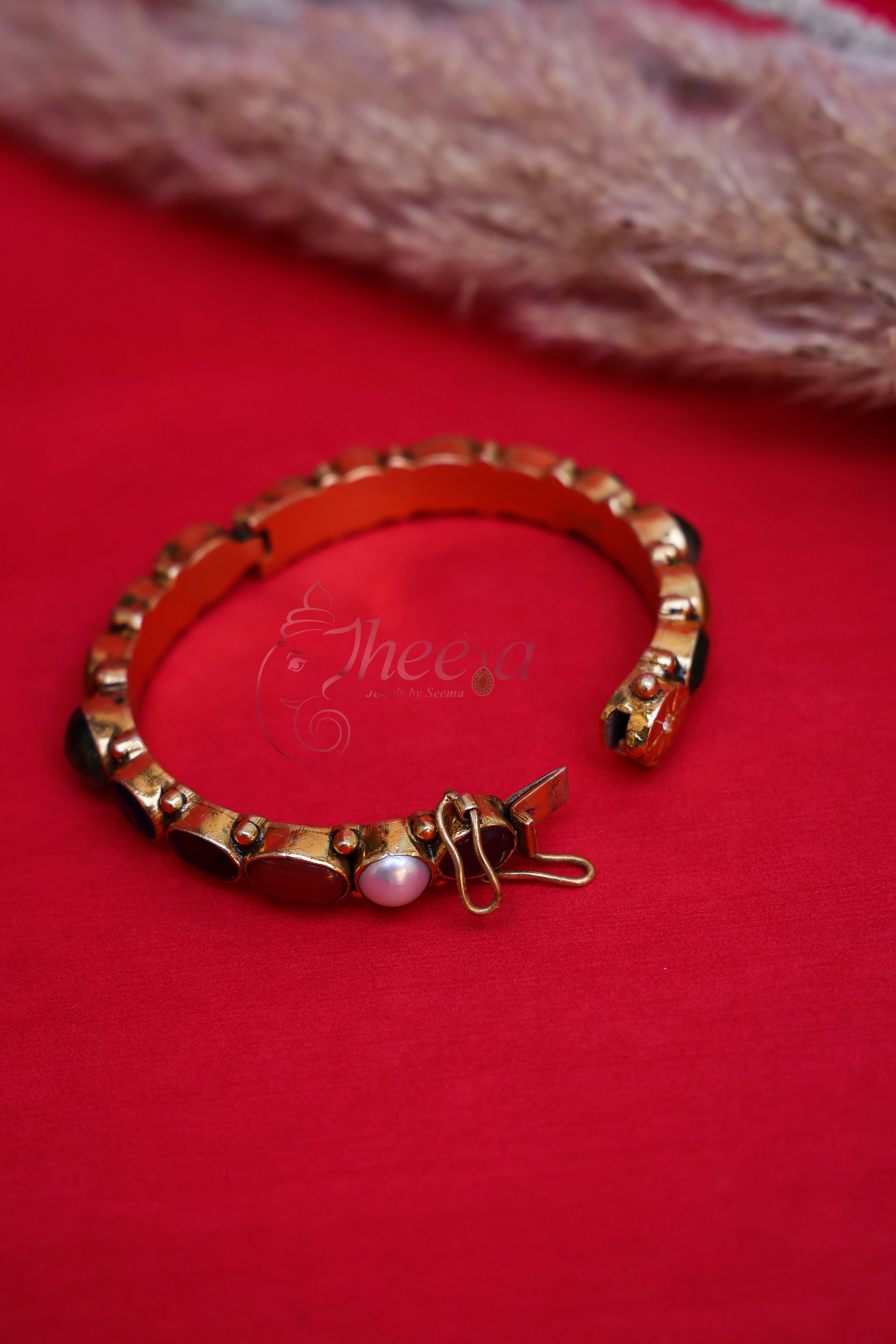 Navratan openable bangles in pair in gold tone