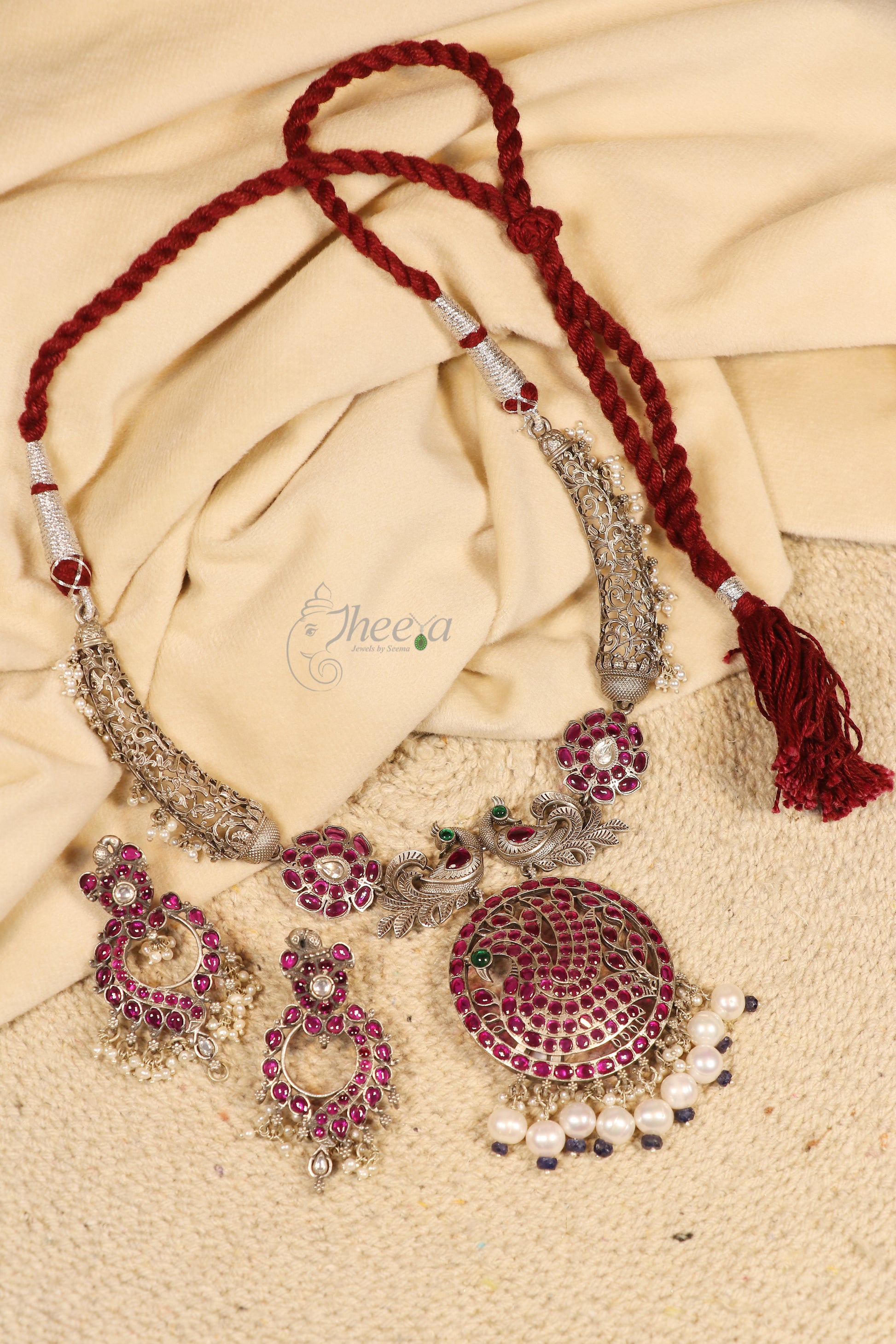 Beautiful Oxidized Temple Jewelry with pearls and semi precios stones all in 92.5 Silver