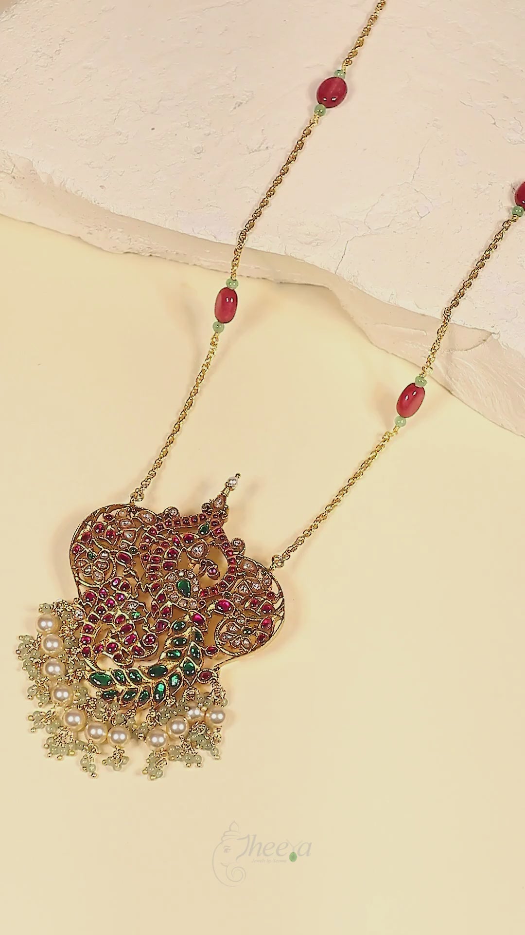 A beautiful Jadau Kundan pendant with chain 92.5 pure silver in 22k gold plating.