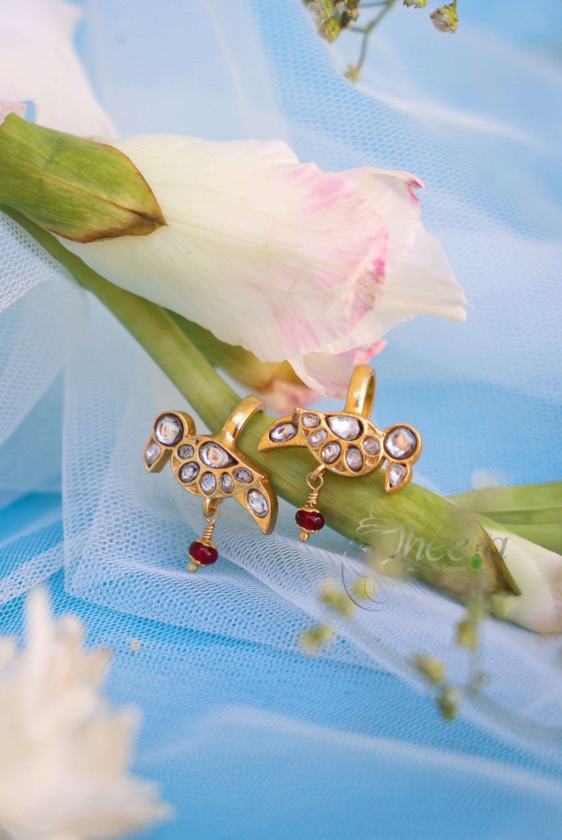 White bird with red bead drop bugadi